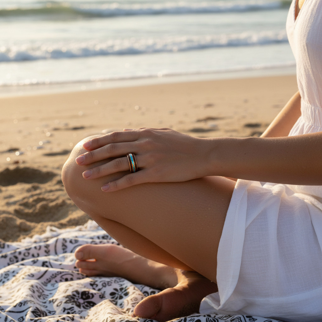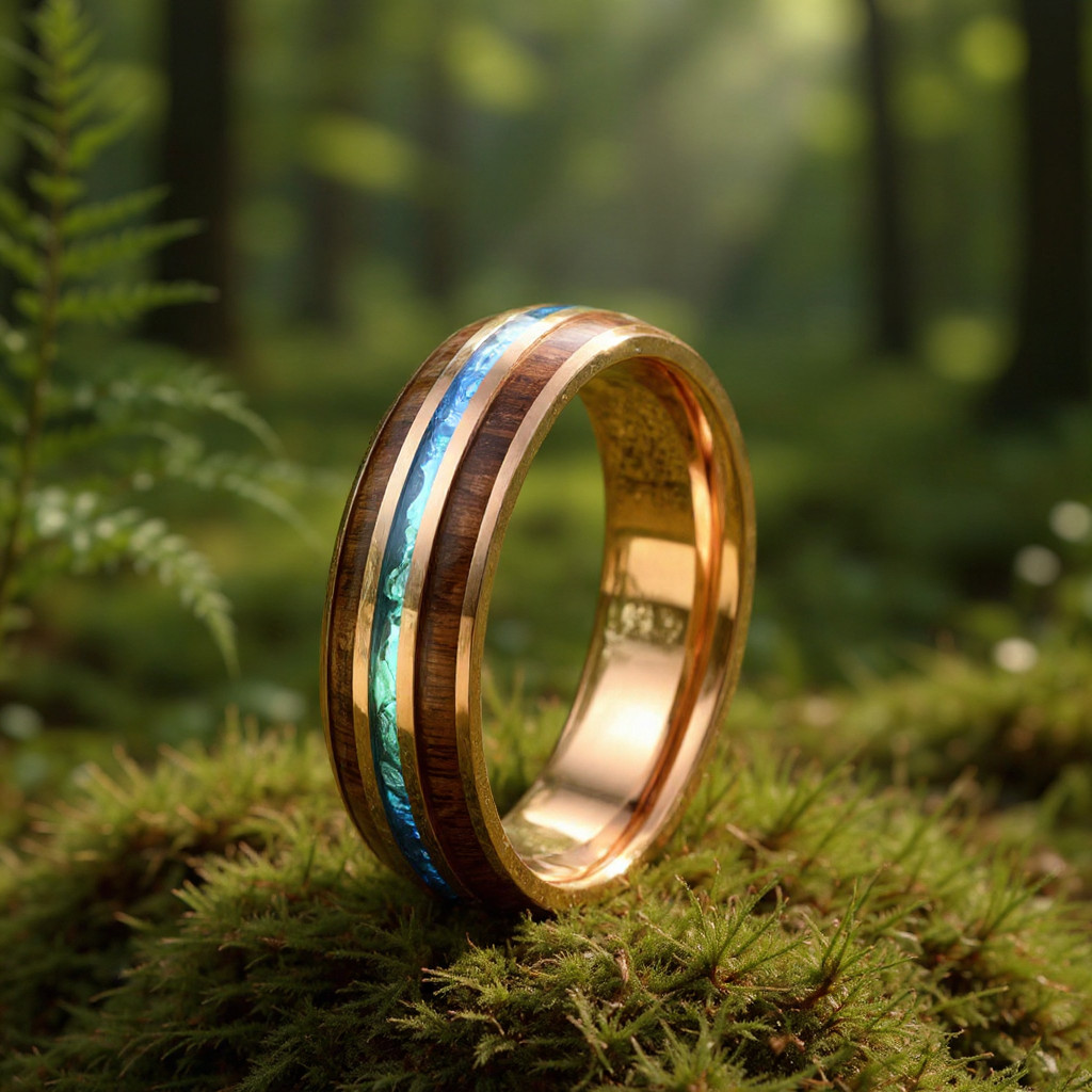 Découvrez notre bague en bois de koa multicolore pour femme et homme, un bijou unique et raffiné. Encerclée de titane, cette bague allie robustesse et durabilité, parfaite pour un usage quotidien.