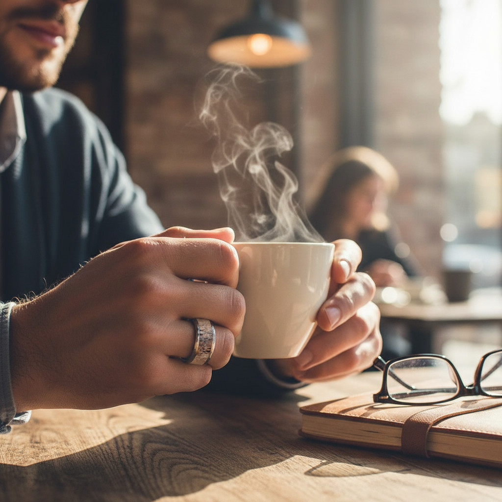 Avec sa largeur de 8 mm, elle affirme un style masculin et assumé, tout en restant agréable à porter au quotidien. C’est une alliance idéale pour ceux qui recherchent un bijou différent, chargé de sens et connecté à la nature.